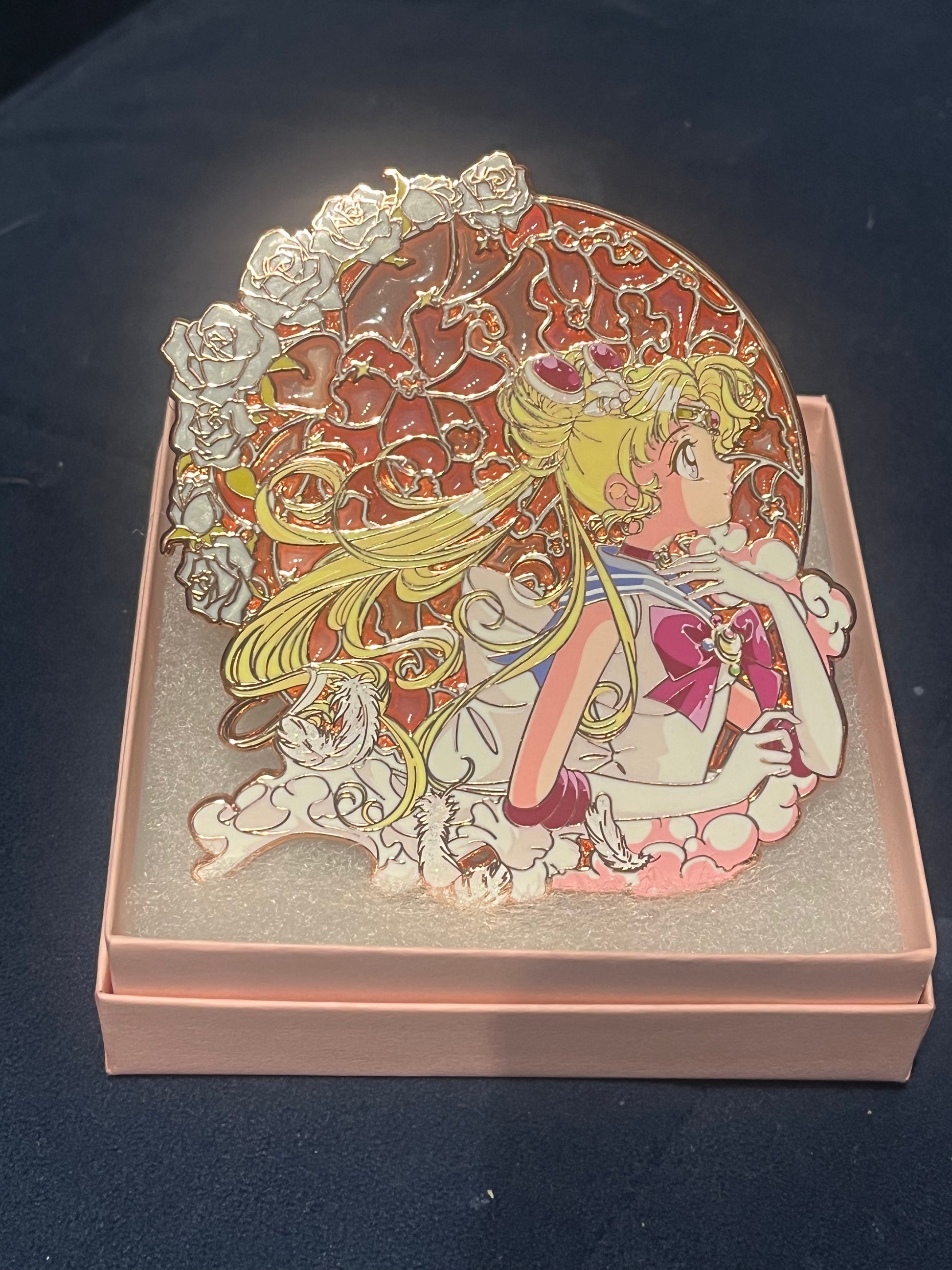Antaneyah It's a beautiful pin! The glass like effect is amazing and it doesn't take away from Sailor Moon's beauty. Will definitely purchase again in the future.