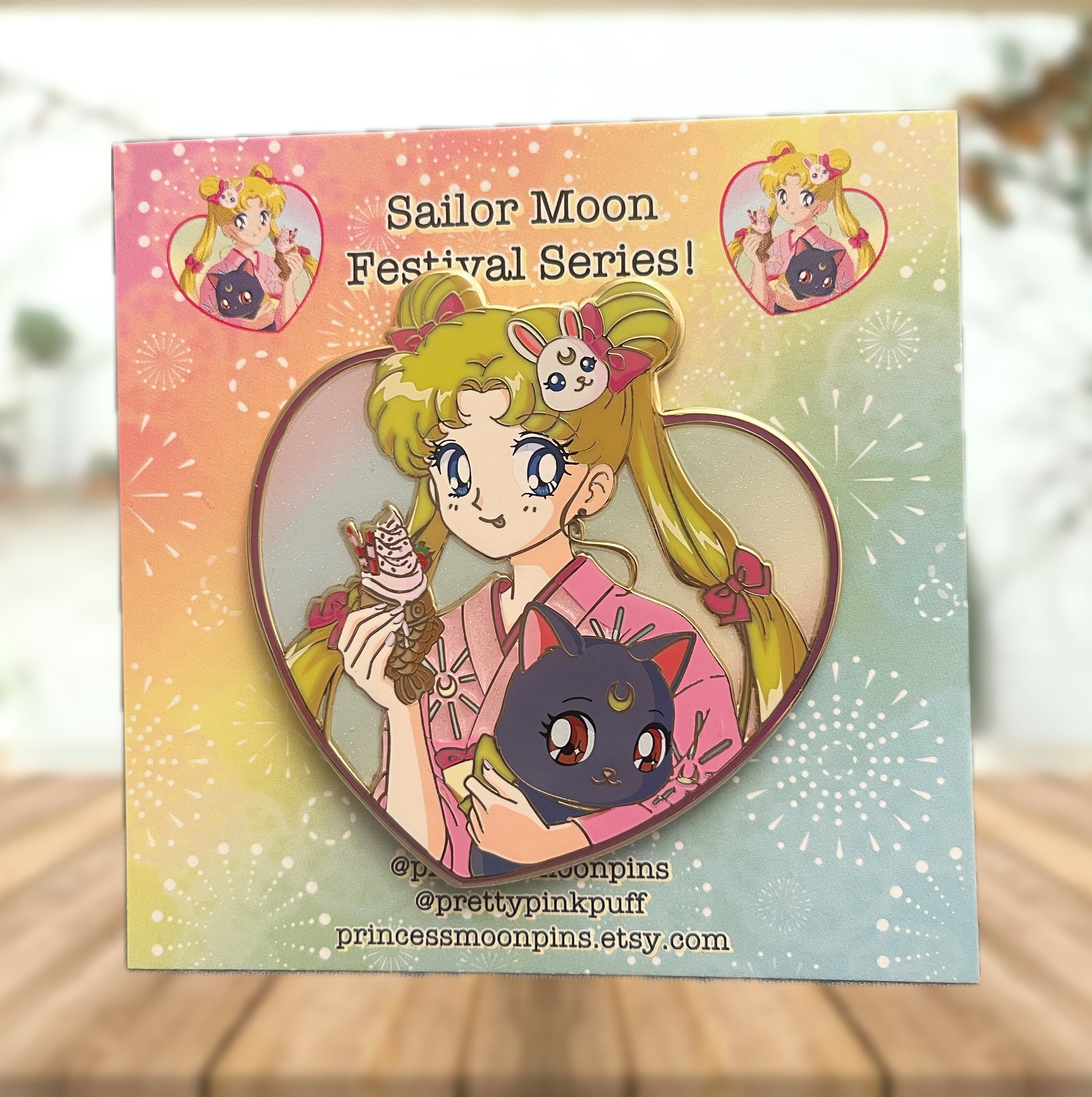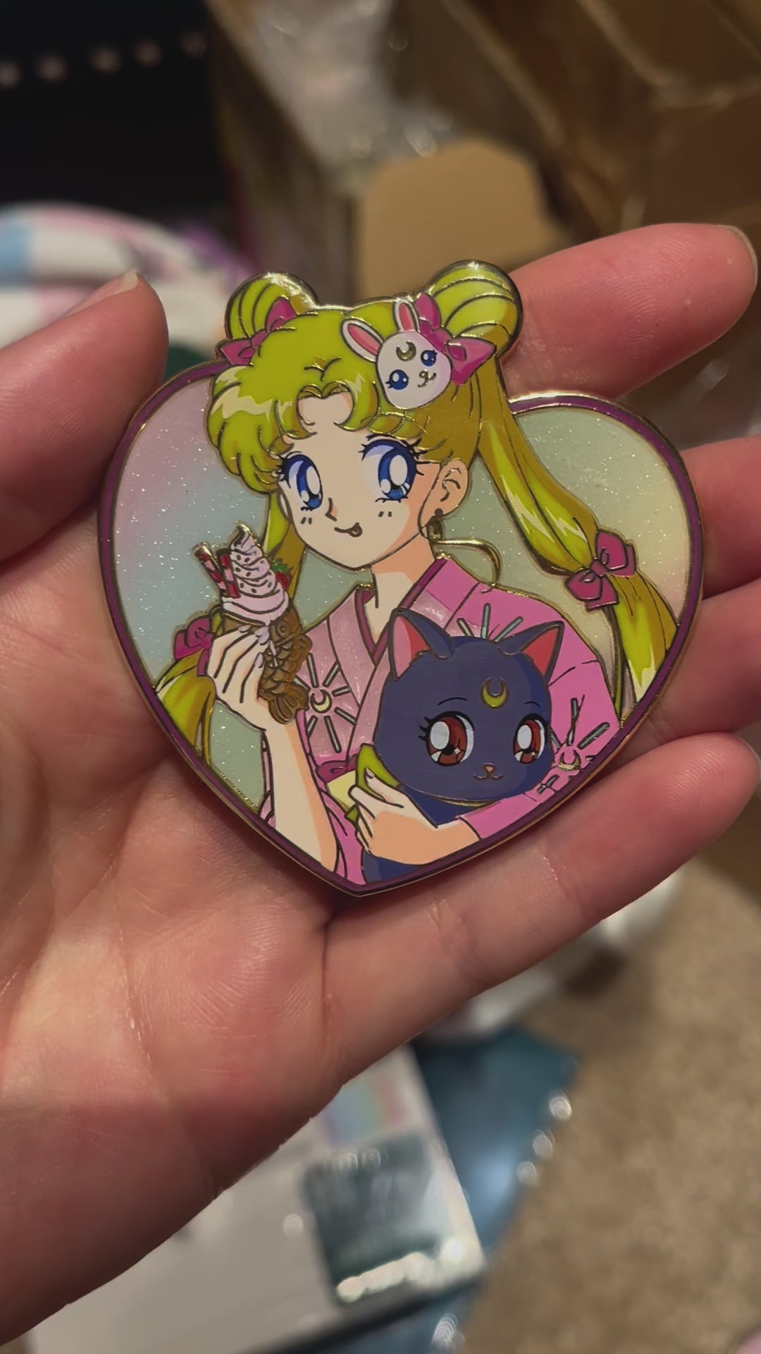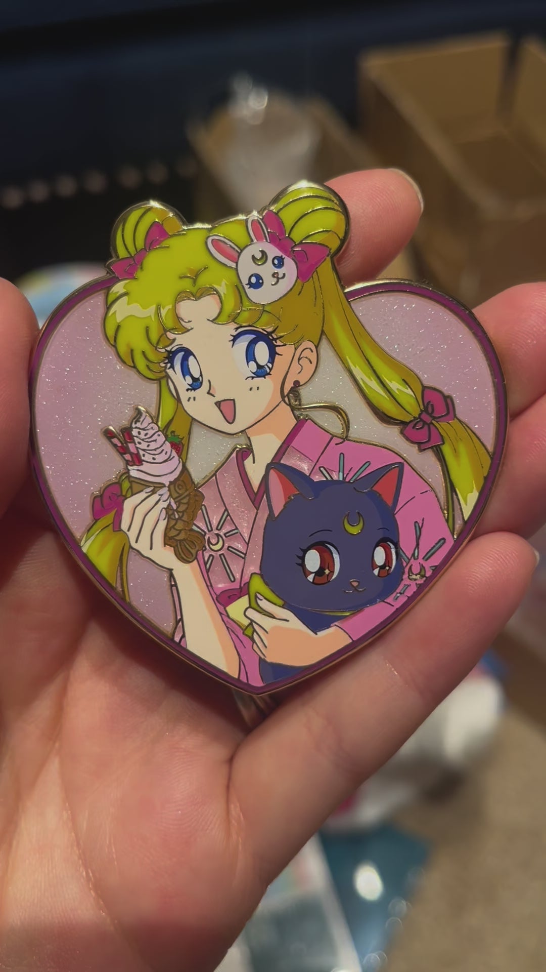 Sailor Moon 2 inch Spinning Enamel Pin - Sailor Moon x Hello Kitty Version!